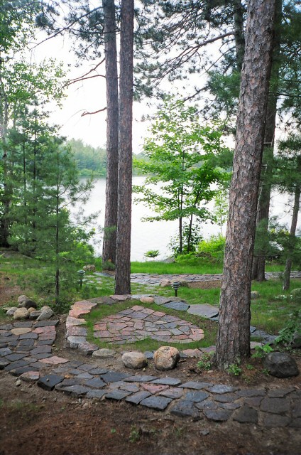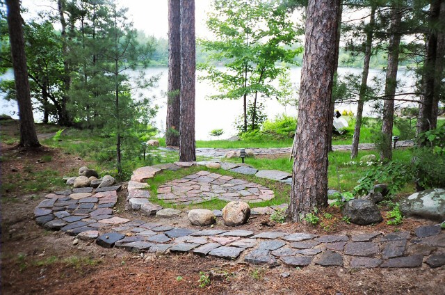 Natural stone landscaping in Parry Sound / Muskoka and the Georgian Bay Area. Quality flagstone hand carved and dry laid. Transform bush into trails down to waters edge with terraced patio's walkways and steps used to turn steep grade cottage lots into fine estates on Lake Muskoka, Joseph, Rosseau, and the Georgian Bay. All work guaranteed.